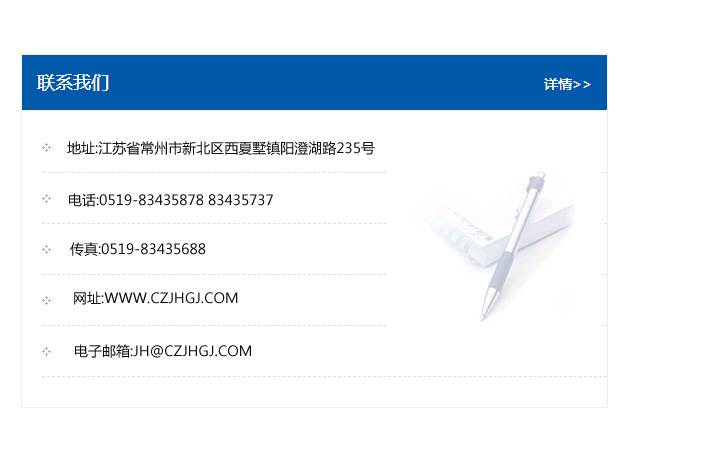 地址:常州市新北區友邦商務大廈1幢16、17層  電話:0519-85101652  傳真:0519-85112595  郵編:213022  網址:www.cz-jiayue_cn.kemce.com  郵箱:xiajifengaa@163.com